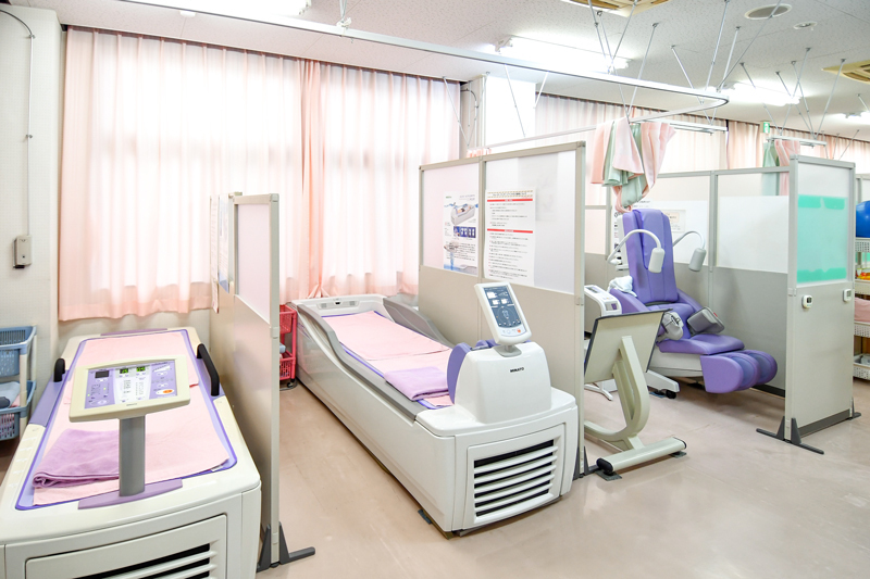 当院のリハビリテーションは、患者様の症状に合わせて、痛みのある部位をホットパックを用いて温め、筋力トレーニングやストレッチなど理学療法士による運動の指導、マッサージ師による徒手マッサージやウォーターベッドを用いたマッサージなどを中心に行っています。
